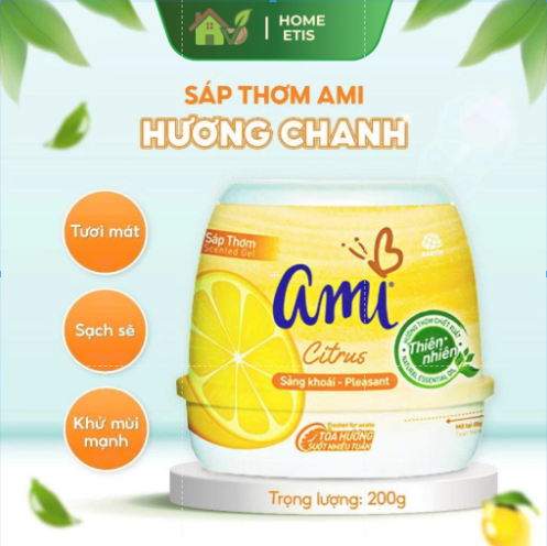 Sáp Thơm Phòng 200g Ami giúp khử mùi khó chịu, giảm mùi ẩm mốc, mang lại hương thơm tự nhiên và thư giãn cho phòng ngủ, phòng khách, nhà vệ sinh, xe hơi và tủ quần áo.